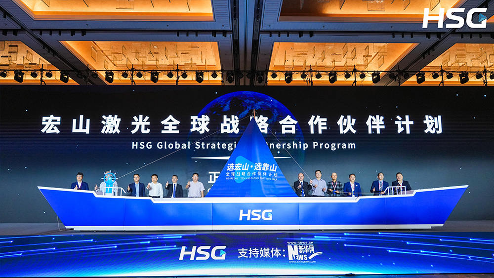 致辭環節結束后,宏山邀請與會嘉賓共同見證,宣布全球戰略合作伙伴計劃正式啟動,寓意進一步加強與國內外合作伙伴的緊密聯系,標志著宏山與全球合作伙伴攜手并進,共謀發展的決心,期待與政府、協會、媒體、供應商、客戶等全產業鏈環節,共同打造跨越地域的金屬成形裝備產業聯盟,共建行業可持續發展生態。