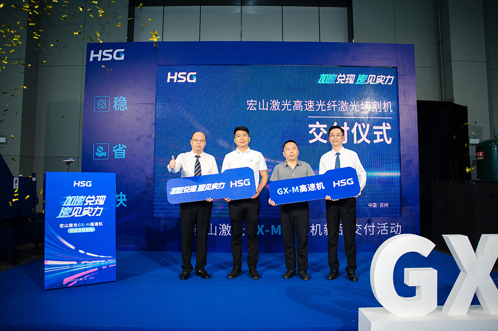 2025年6月25日,宏山激光(HSG Laser)在蘇州基地隆重舉辦“加速兌現(xiàn),速見實力”主題交付活動,榮譽見證首批GX-M高速激光切割機正式交付啟用。此次儀式標(biāo)志著GX-M系列產(chǎn)品全面邁入市場應(yīng)用,來自行業(yè)的多位嘉賓、合作伙伴及客戶代表齊聚一堂,共同見證這場以“技術(shù)兌現(xiàn)、價值落地”為核心的交付盛典。