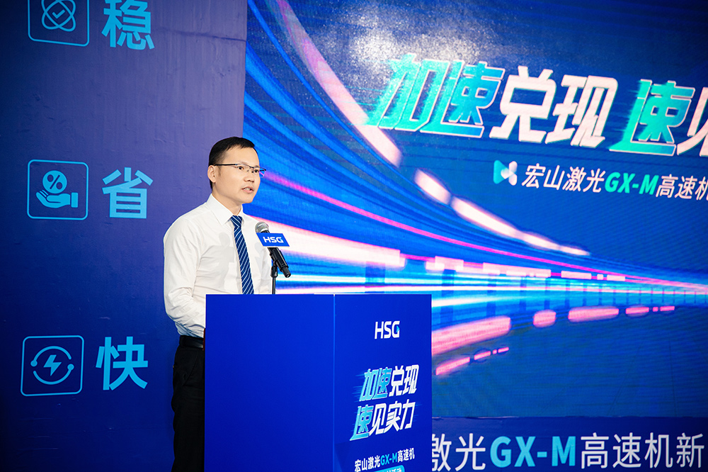 活動伊始,宏山激光業(yè)務(wù)副總裁Liam Zhang發(fā)表致辭指出:“GX-M不是一臺單純的設(shè)備,而是一種結(jié)果交付的承諾:跑得動、跑得穩(wěn)、跑得值。”他表示,宏山激光始終堅持以客戶為中心、以結(jié)果為導(dǎo)向,GX-M自立項之初便錨定“更快、更穩(wěn)、更省”的研發(fā)目標(biāo),聚焦客戶在加工效率、穩(wěn)定性與成本控制等核心痛點,致力于將真正可用、可復(fù)制、可創(chuàng)造效益的解決方案落地市場。